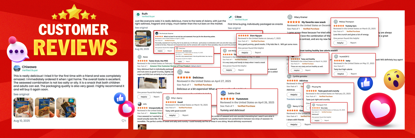 View full detailsBullet Points Shock Value Deal – Original case price $479.76, now just $384 after 20% OFF – huge savings on premium seaweed snacks. FREE $95 Vi...